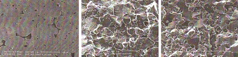 (3) α-Al2O3晶体内含许多5~15μm的圆形封闭气孔,开口气孔则较少,一般2-3%;